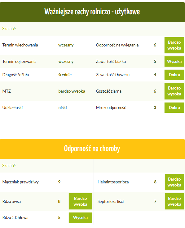 – wysoka sztywność źdźbła – bardzo dobra odporność na wyleganie,