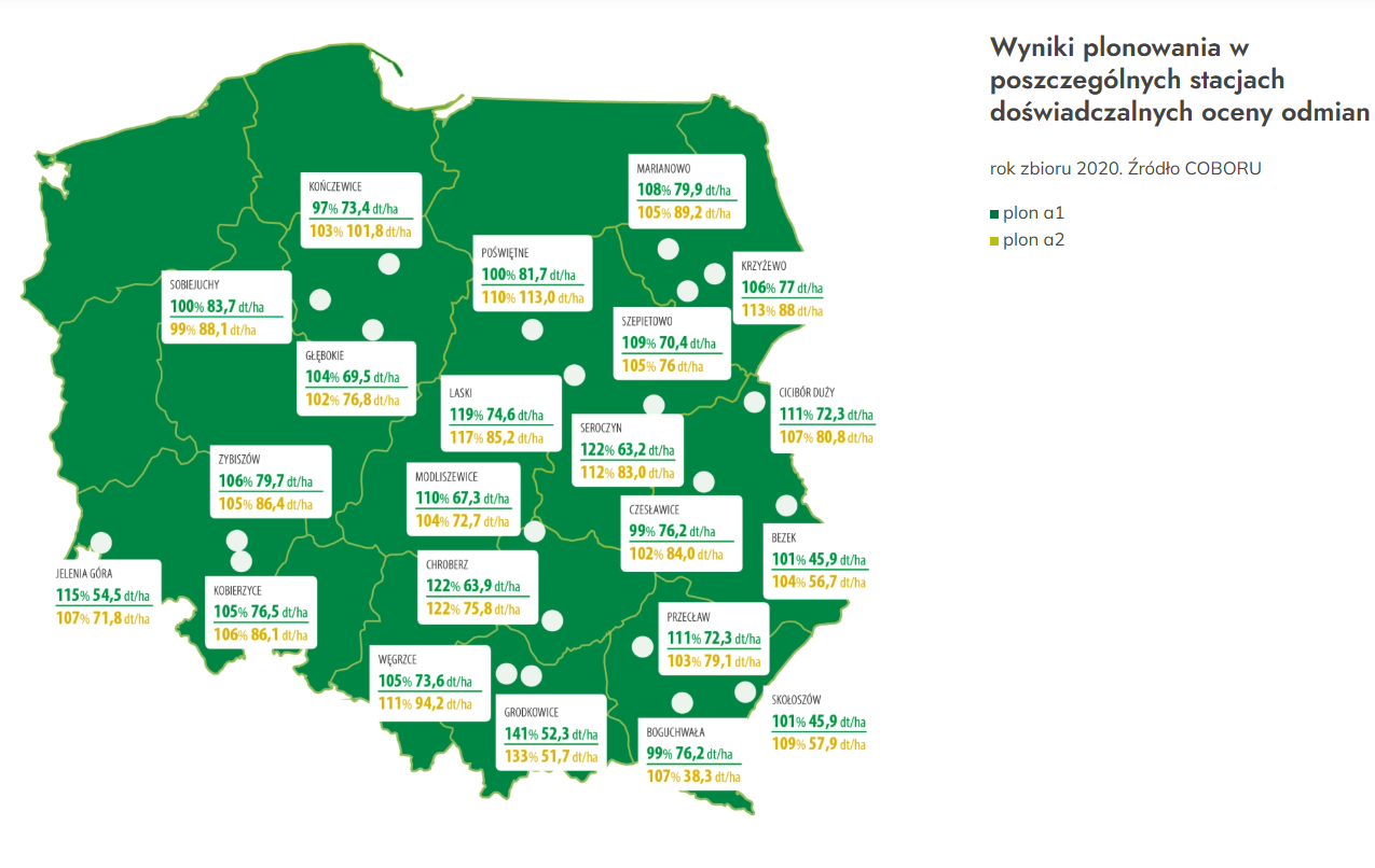 - Bardzo wysoki potencjał plonowania – odmiana uplasowała się czołówce wyników plonowania PDO 2020 na obu poziomach agrotechnicznych